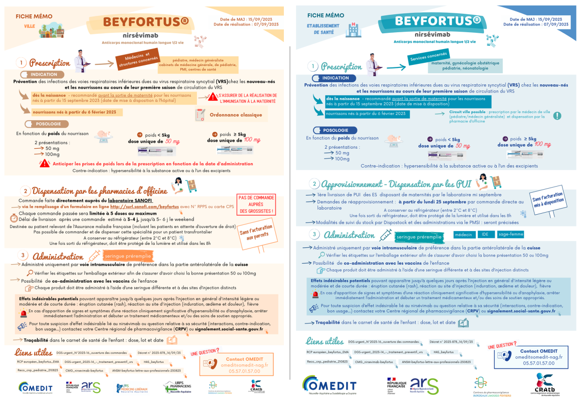 - OMEDIT NAGG : Mise à votre disposition de deux fiches mémo sur le circuit d’utilisation de l’anticorps monoclonal BEYFORTUS (nirsevimab) à l'attention des professionnels de santé